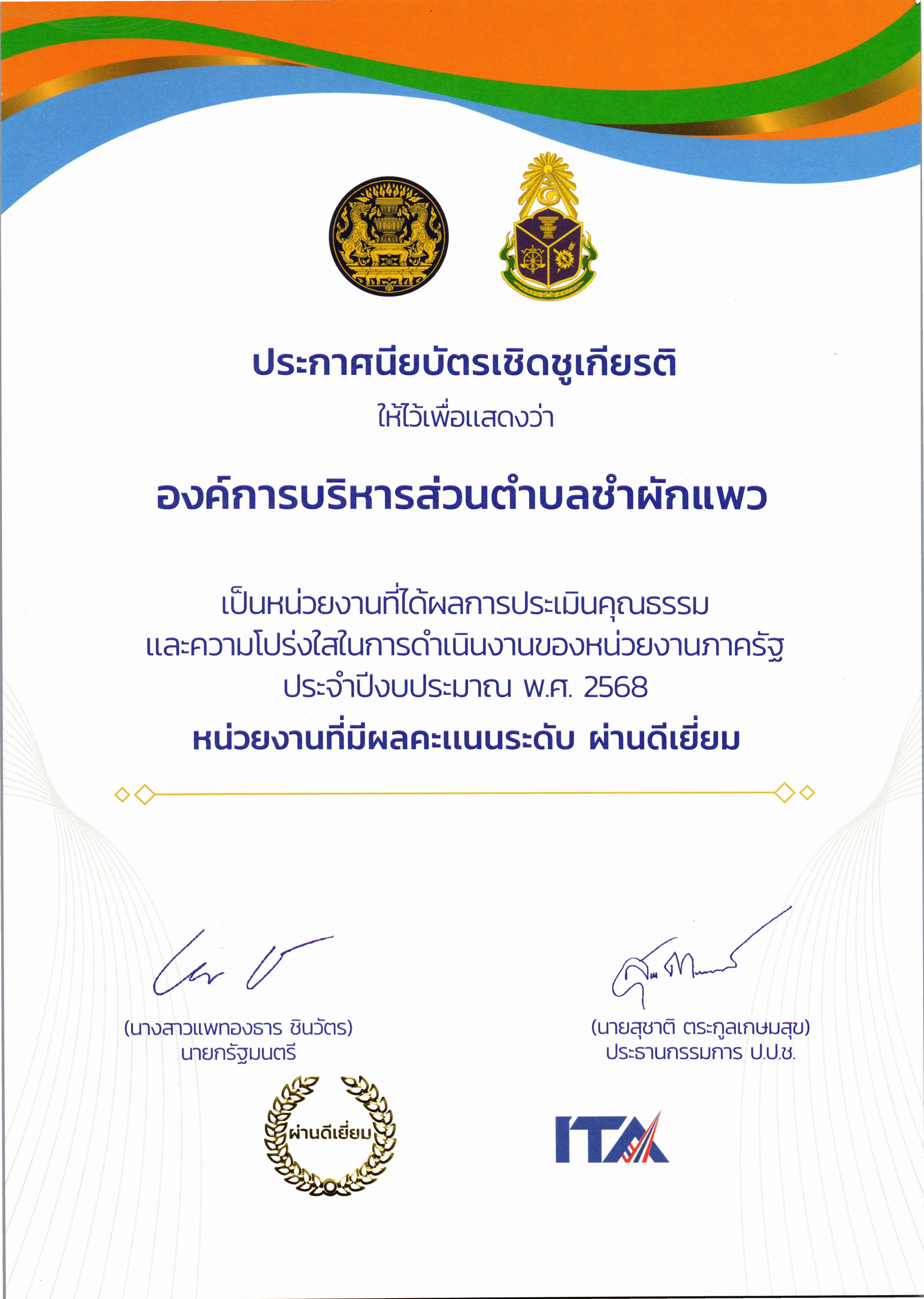 ประกาศเกียรติคุณ องค์การบริหารส่วนตำบลชำผักแพว ๓ ไ...