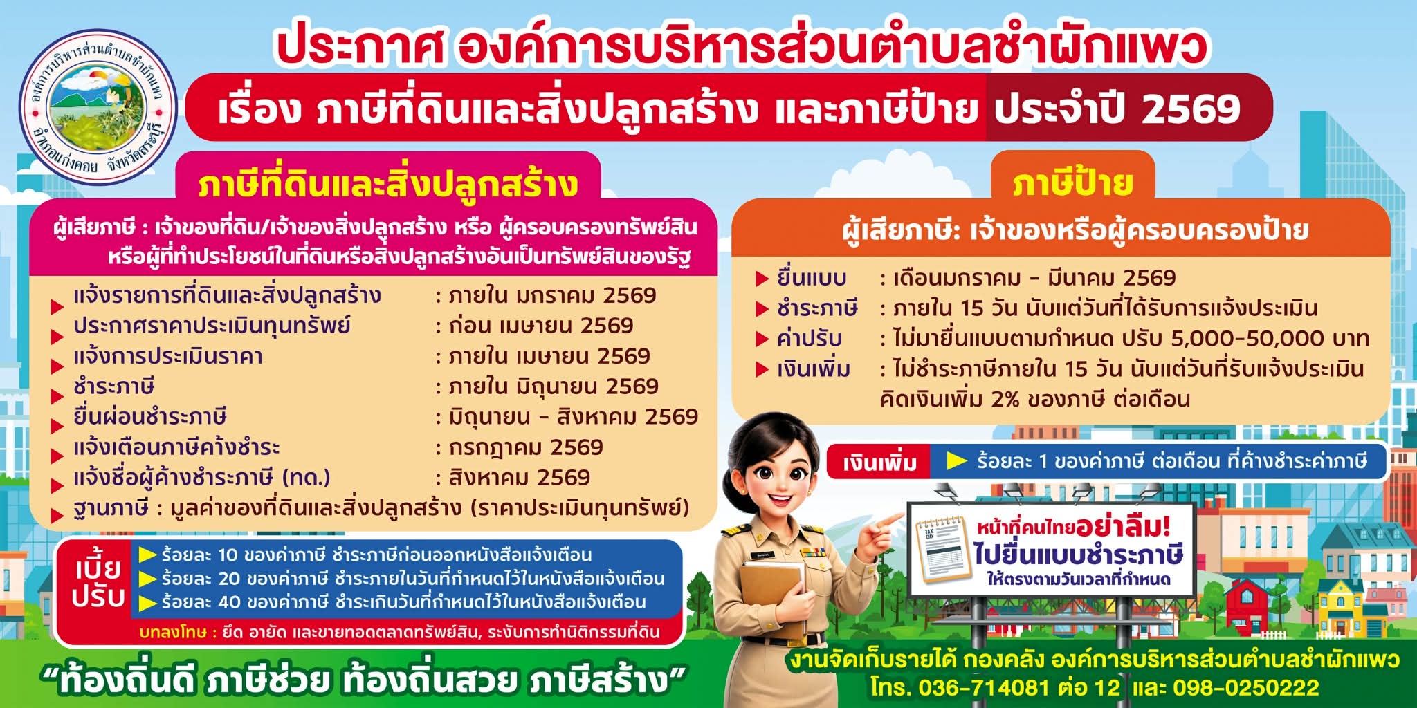 ขอประชาสัมพันธ์ เรื่องภาษีที่ดินและสิ่งปลูกสร้าง